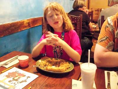 The 5.75 year old was (and still is) small for her age. At 5.75 years old she was probably the size of a 4 year old. This is important to consider because height can limit ride choices. She barely met the 42″ height limit for Test Track at EPCOT. |