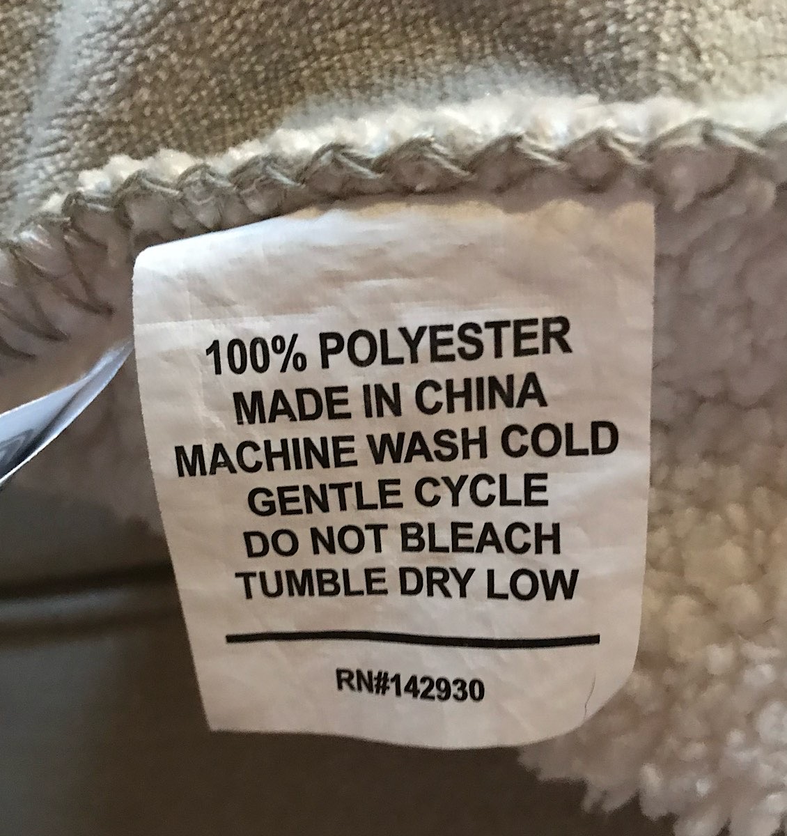 I have owned fancy dryers with more options than colors of the rainbow and my current dryer is a bare-bones model; none of them has settings that match laundry labels. This is the laundry label on my dog’s couch blanket.
