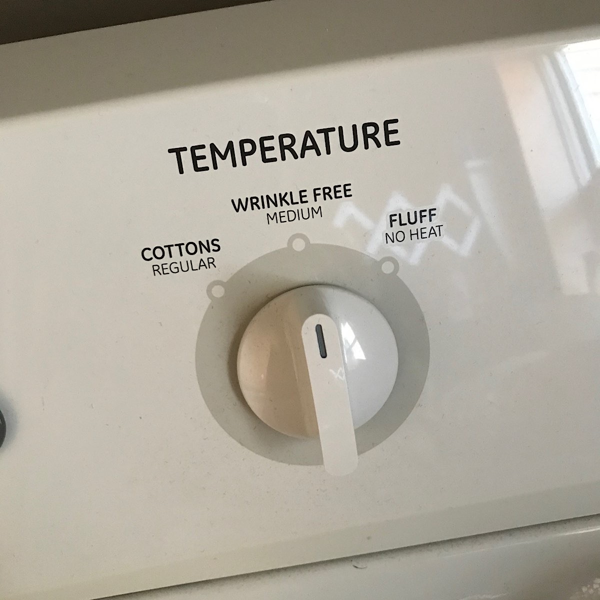 And before you suggest it, Fluff (No Heat) is not the same as Low. Fluff won’t dry anything. I know. I’ve tried. It comes out just as wet as it went in 80 minutes earlier. Everything in our house gets dried on Wrinkle Free (Medium) though “wrinkle free” is also a misnomer. And while we’re talking about laundry equipment. When did Colors become a temperature?