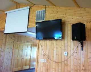 Well, that fantasy came crashing down later in the week when we went to pick the middle daughter up at camp. She gave me the grand tour of their “cabin.” Same actual beds that they had at horse camp, adjoining bathroom, insulated walls, air-conditioned, a gathering room with a large-screen flat-panel TV (for movie night or rainy days, I’m told), and actual furniture that didn’t look as though it had come off the spring-cleanup pile in someone’s driveway. Not quite as spiffy as horse camp, but only because the camp itself isn’t as brand new. The amenities are part of renovations made at a the camp, which itself has been around for decades. All I could do was shake my head.